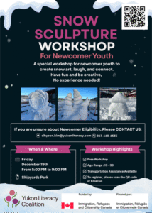 This program is for Newcomer Youth. It will be Friday December 19th, from 5pm to 9pm in Shipyards Park. Please see the poster below for full details!